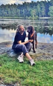 Med sin Flatcaoted retriever Asta tränar hon Nosework och Rallylydnad. Asta är dessutom diplomerad Svart Duktig Hund!